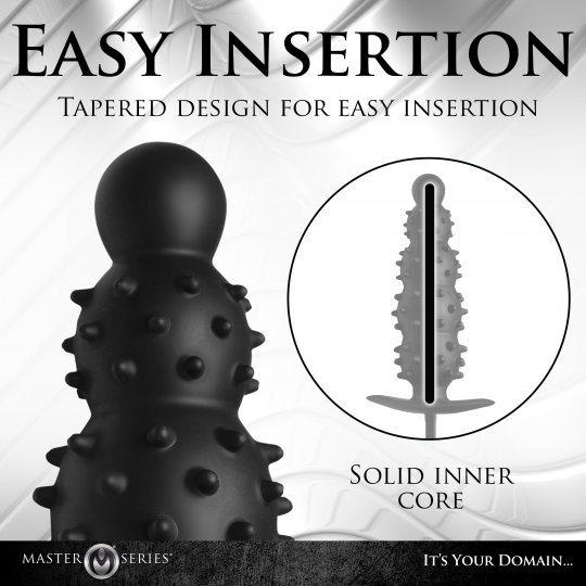 • Heightened Sensations: This stimulating, textured plug is covered with soft, round spikes. The beads of the plug get bigger the deeper you go.