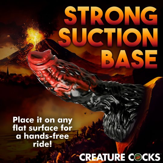 • Fantasy Dildo: This thick, textured, red and black fantasy dildo comes from the hot lava flows of an enchanted volcano! Enjoy every bump, ripple, rib and groove on this wet, hot dong!